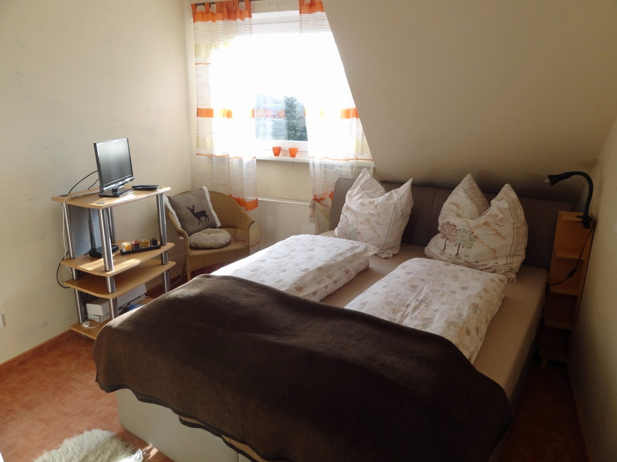 In unserer 70 qm großen Wohnung im 2. Obergeschoss (ideal für 2 - 3 Personen) erwartet Sie ein gemütlich eingerichteter Wohnraum mit SAT-TV, eine gut ausgestattete Küche, zwei Schlafzimmer und neben dem geräumigen Bad gibt es noch eine Gästetoilette.